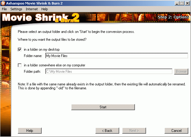 Gdy juz wpisaliśmy rozmiar pliku wynikowego, klikamy na next. W następnym oknie podajemy lokalizację gdzie chcemy zapisać nasz film i klikamy na start.